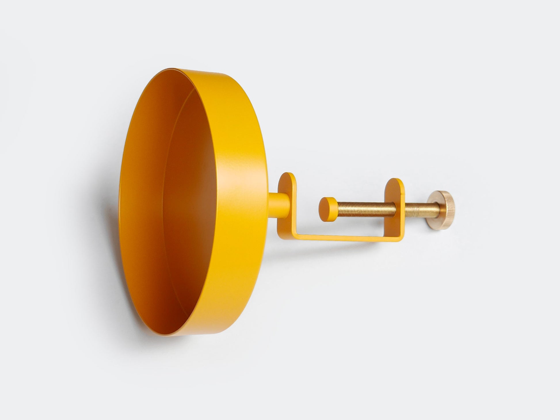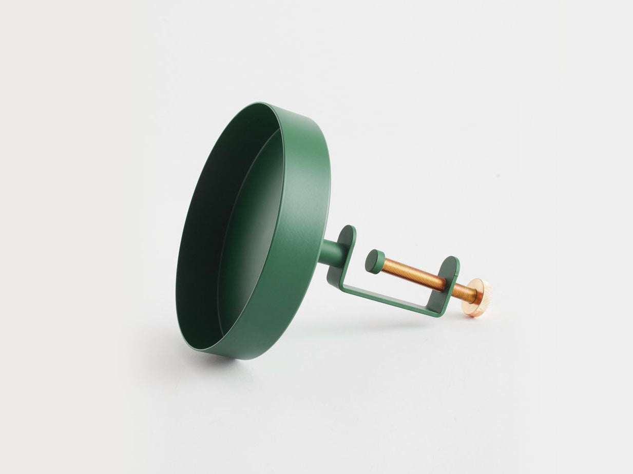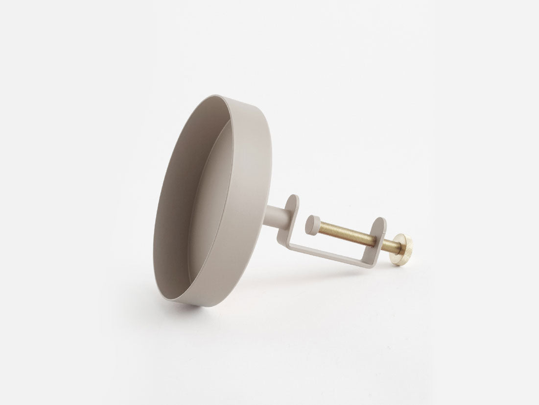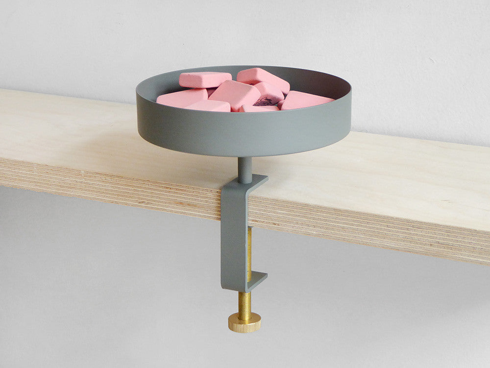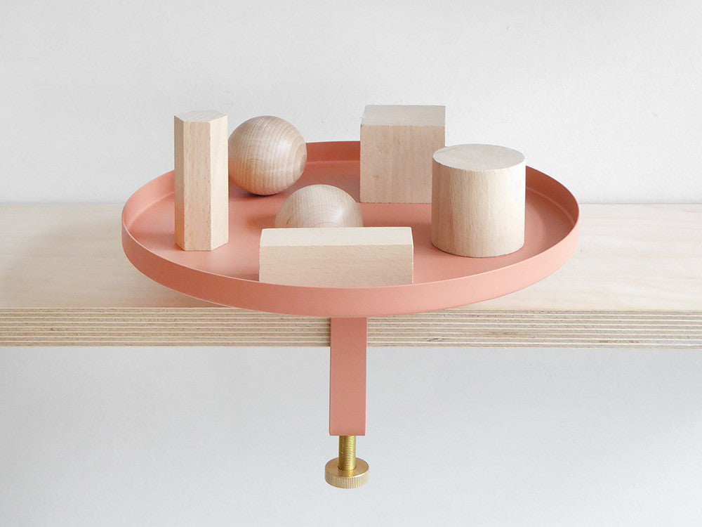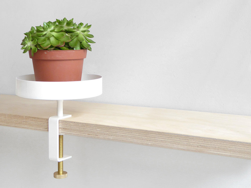 Extend your desk with a clamp tray. Beautifully made from steel, powder coated in matt colour, with brass screw detailing beneath.