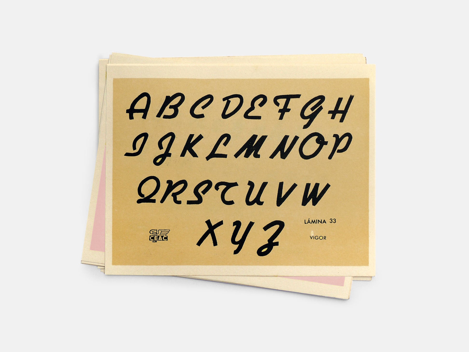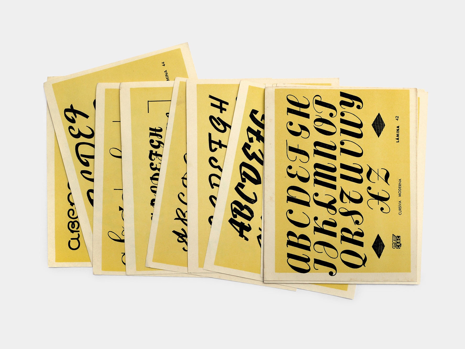 We've got a nice stack of these old type sampler sheets from Spain, most of which fall into the 'script' category of design. The colour will vary, we currently have a mix of pale orange, yellow, blue & pink. Mixed packs of 4. 200x160mm
