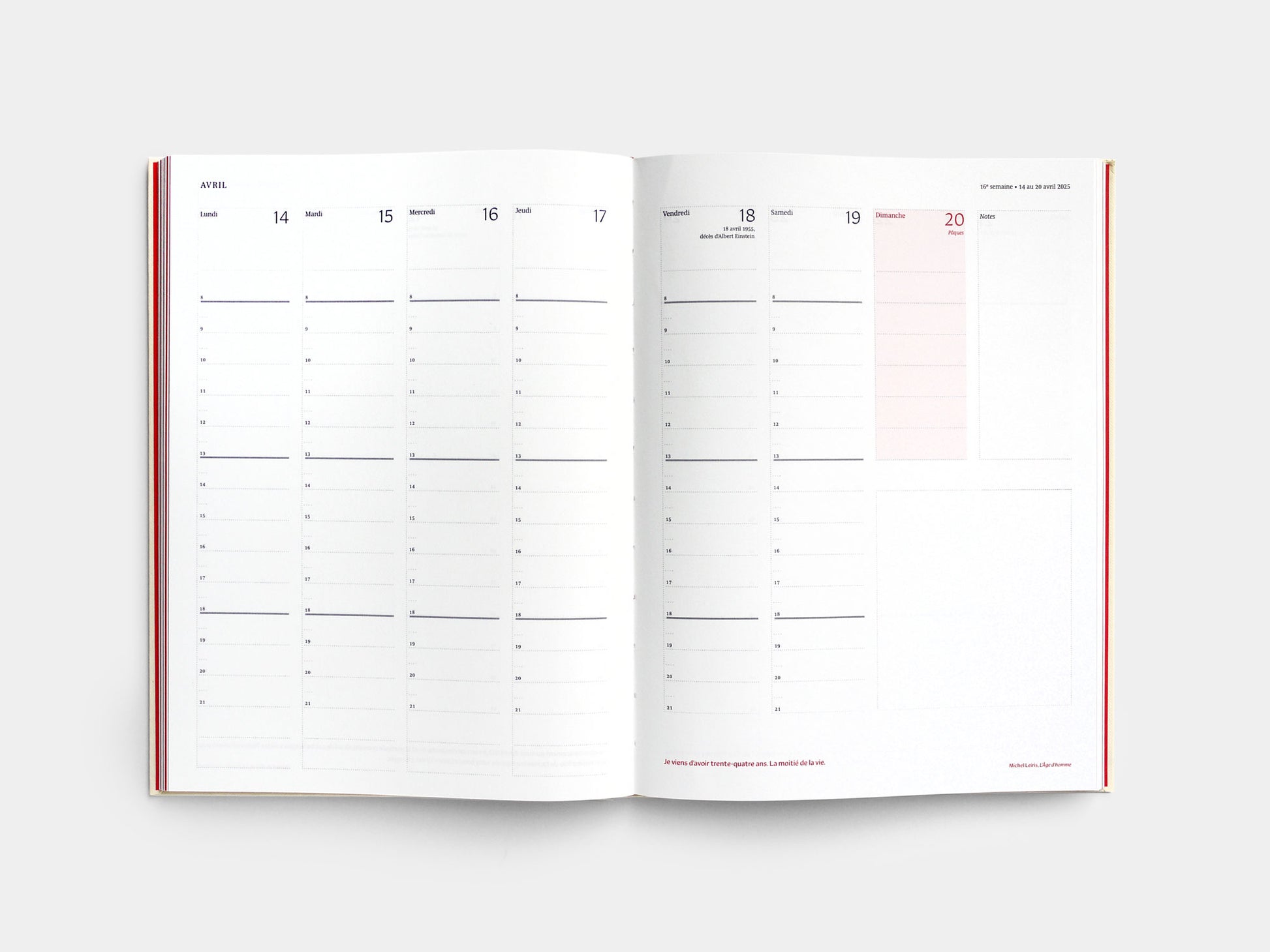A fantastic desk diary, with a design taken from Gallimard's paperback books. The French publishing house have issued this Agenda which features a year overview, month overview and then a more detailed weekly schedule. Plenty of room to write in, as well as a fabric marker & literary quotes throughout.