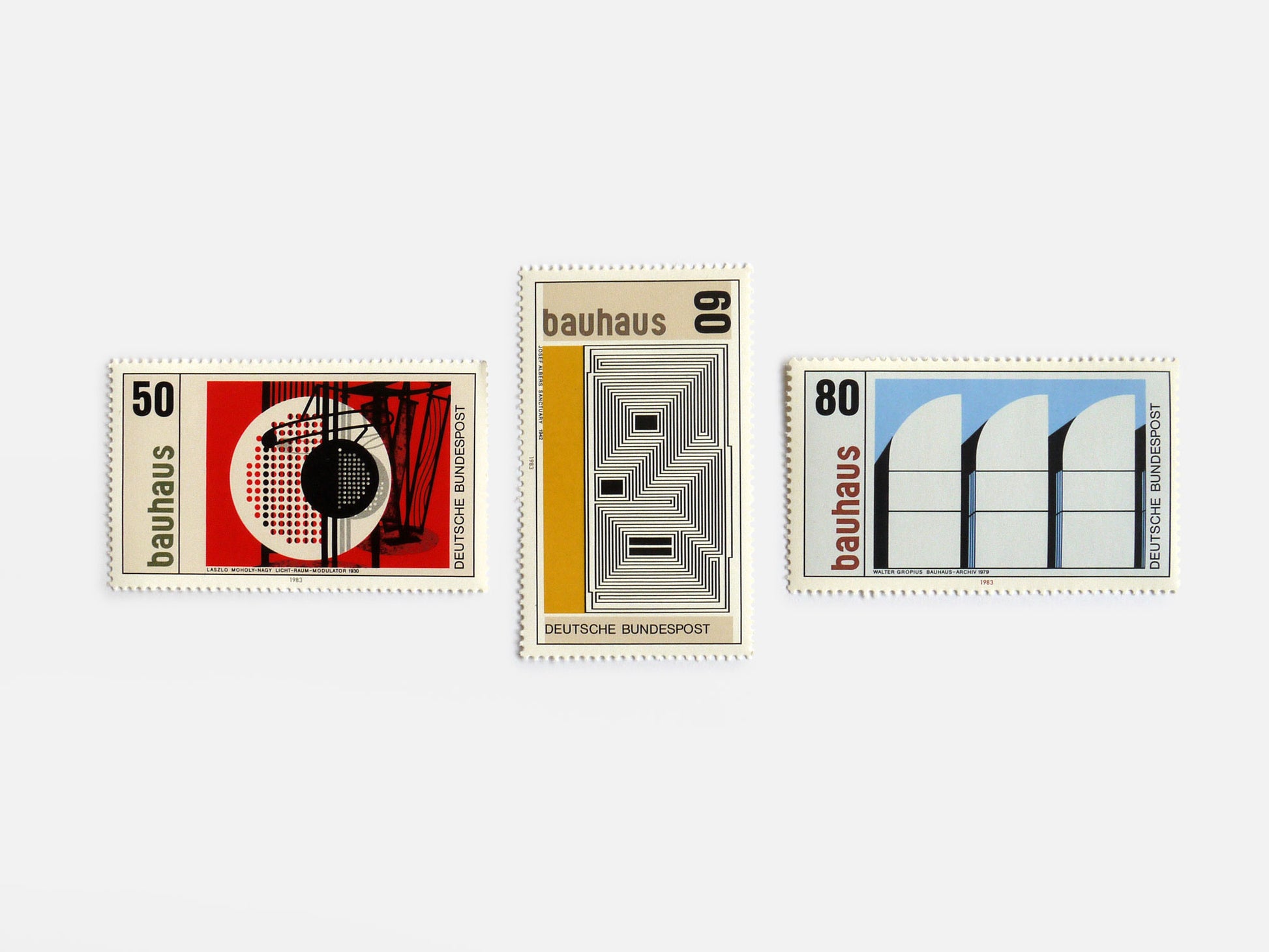 A three part celebration of Bauhaus design from 1983, in mint condition. The depiction of the Bauhaus Archiv in Berlin is especially nice.