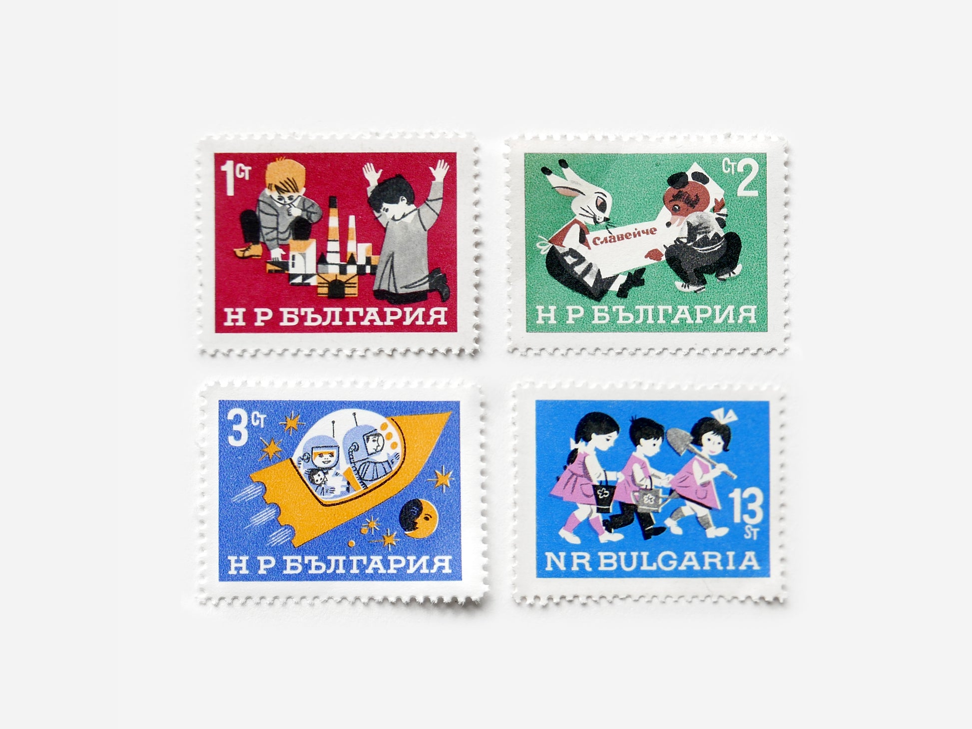 A celebration of Children's Day, issued in Bulgaria in 1962 and in perfect condition. The rocket is the best!