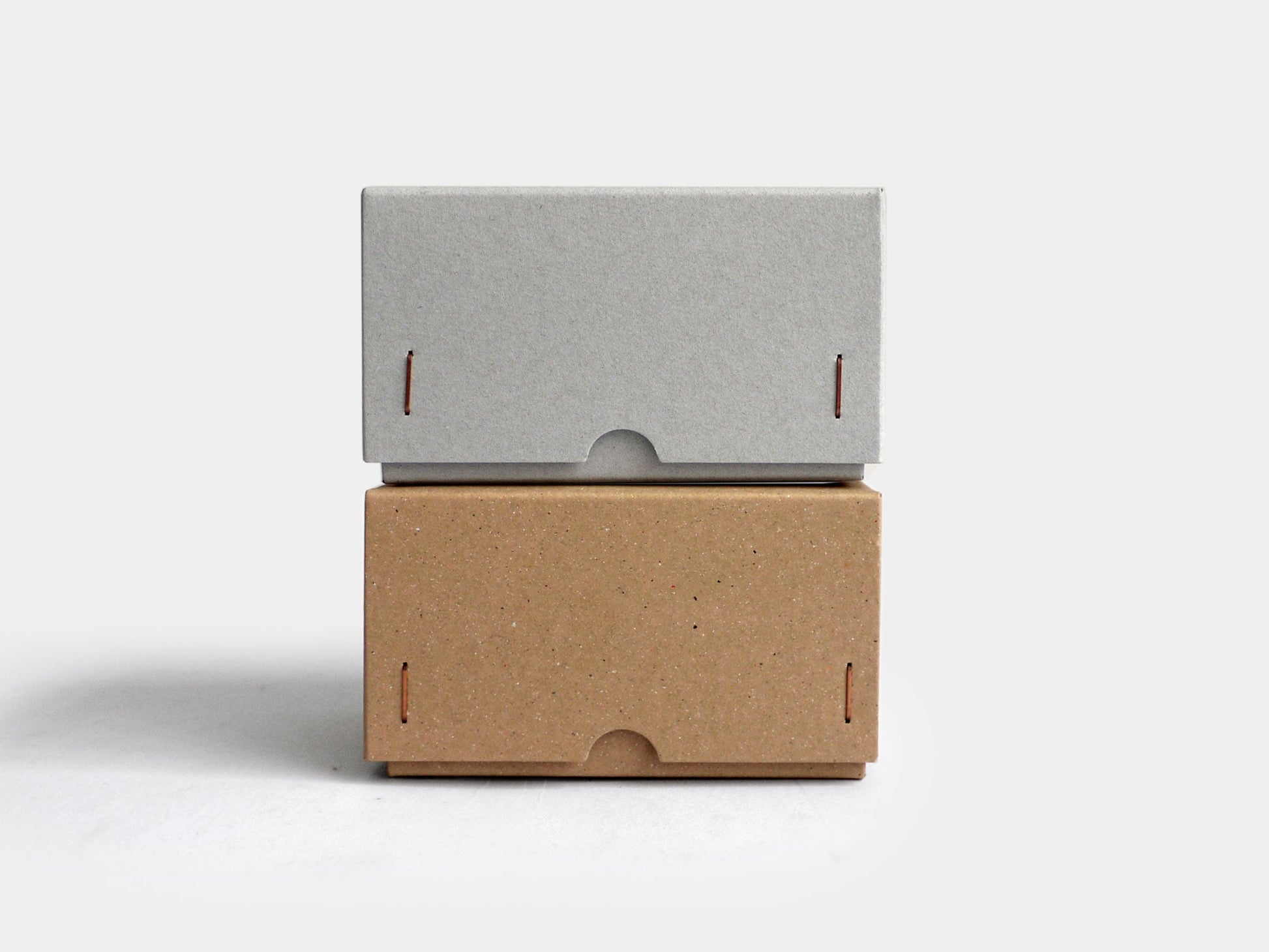 Sturdy boxes designed for business cards, in kraft or grey board, complete with a window cut out into which you can label the contents. 108x60x60mm.