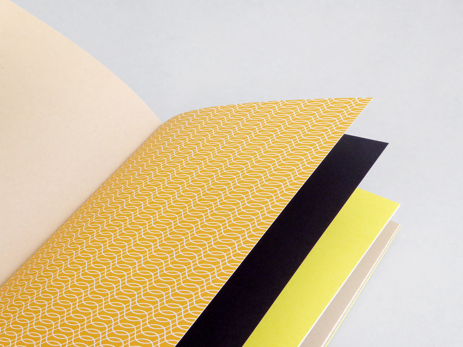 A handmade, letterpress notebook of mixed papers. Gridded, plain and various colours make up this pleasing book. It measures 13x19cm and has 36 pages.