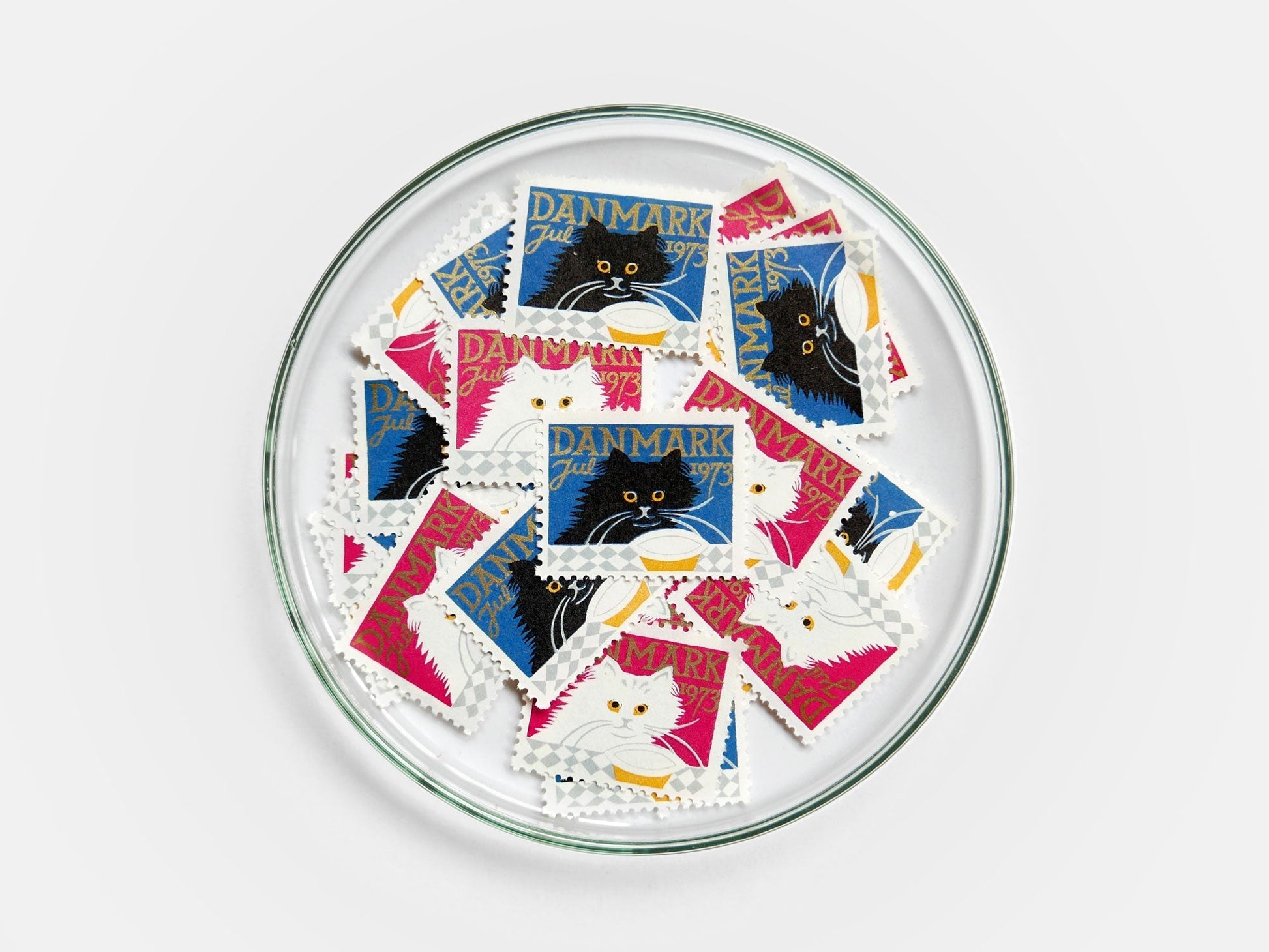 Cats that got the cream, in stamp format. Issued in Denmark, 1973.