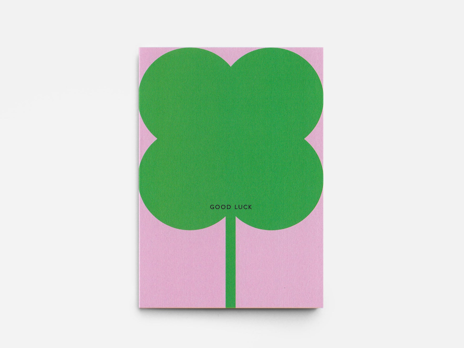 Nothing says 'luck' like a four leaf clover. A folding card, plain inside, which is graphic & fun.