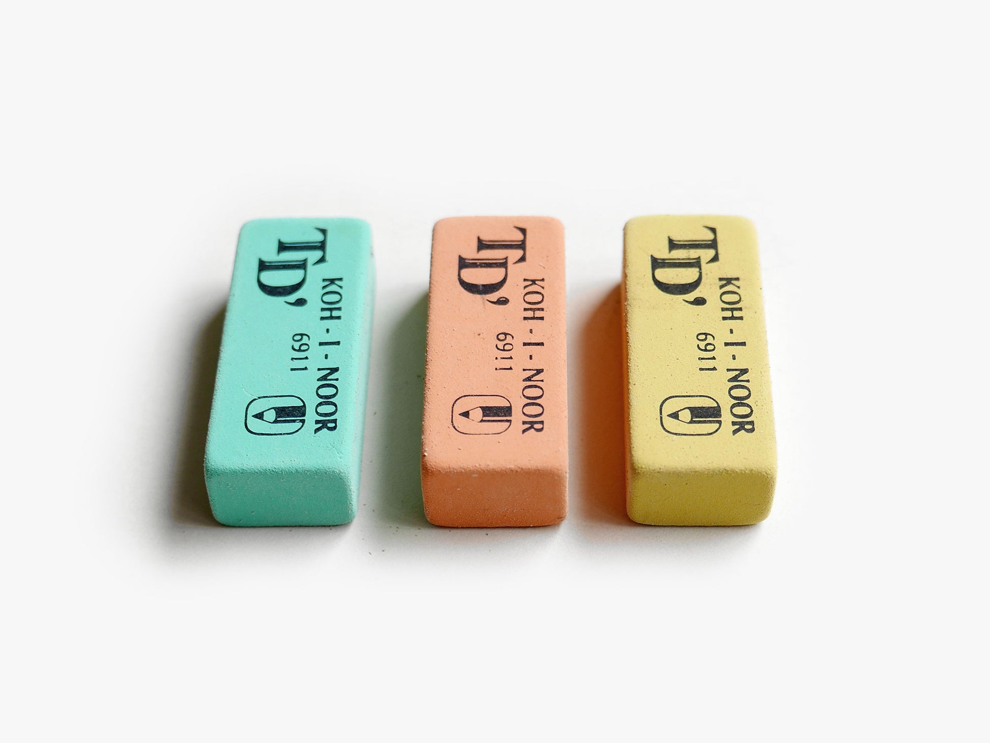From the legendary Czech pencil manufacturers, three soft pencil erasers in edible pastel shades. The eraser measures 48mm in length.