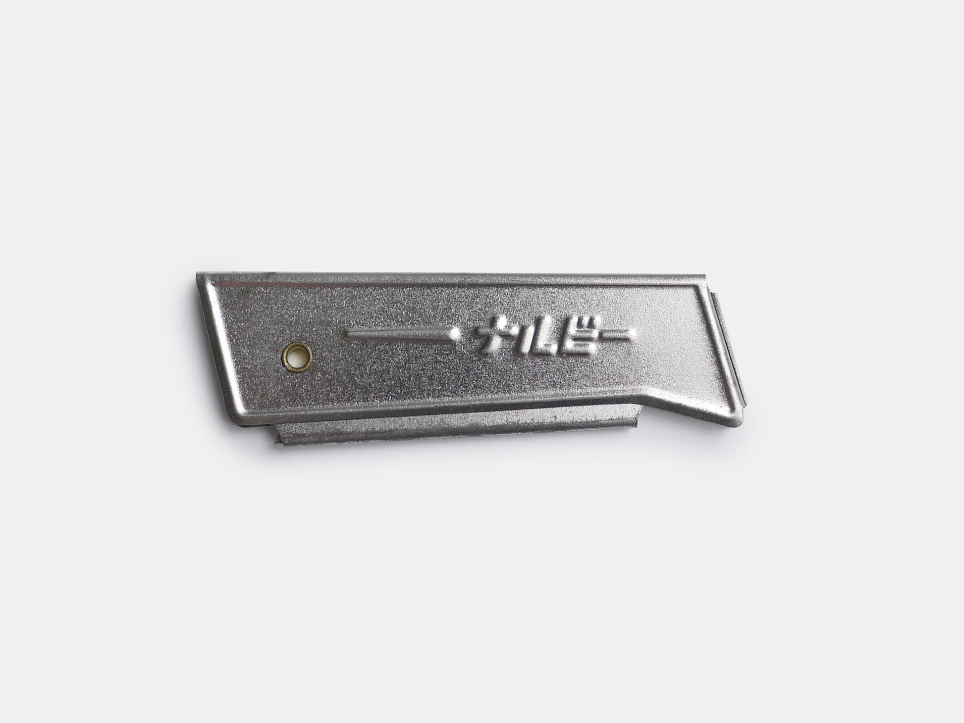Japanese dead stock craft knives which hold a standard blade. We love the simple, pressed aluminium and the clean type. 75mm when closed, 115mm when open.
