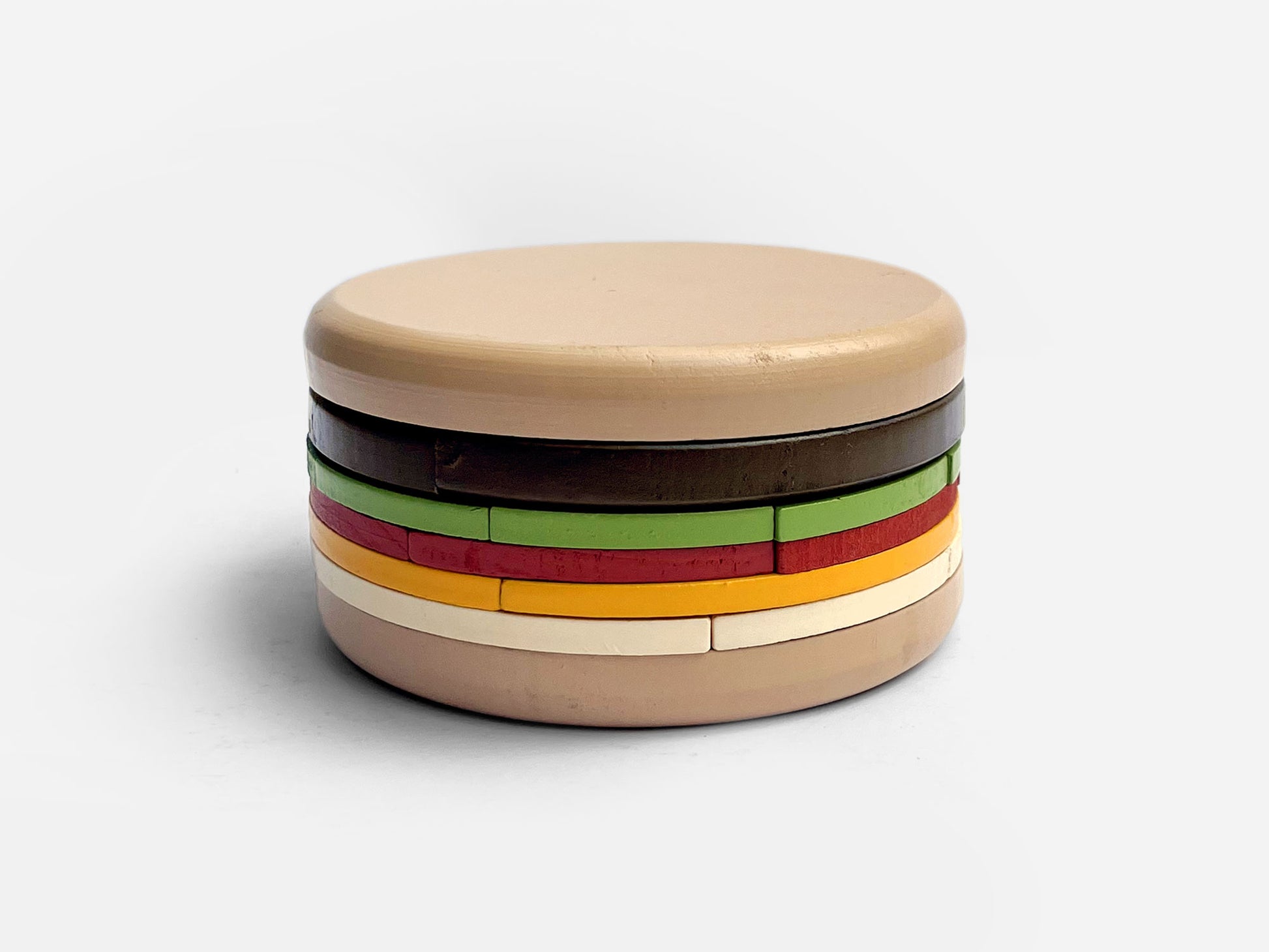 Who knew that burgers could be educational? The 90s did. This wooden stacking burger is made up of layers which are cut & labelled in fractions - ideal for teaching how many make a whole. 100x60mm