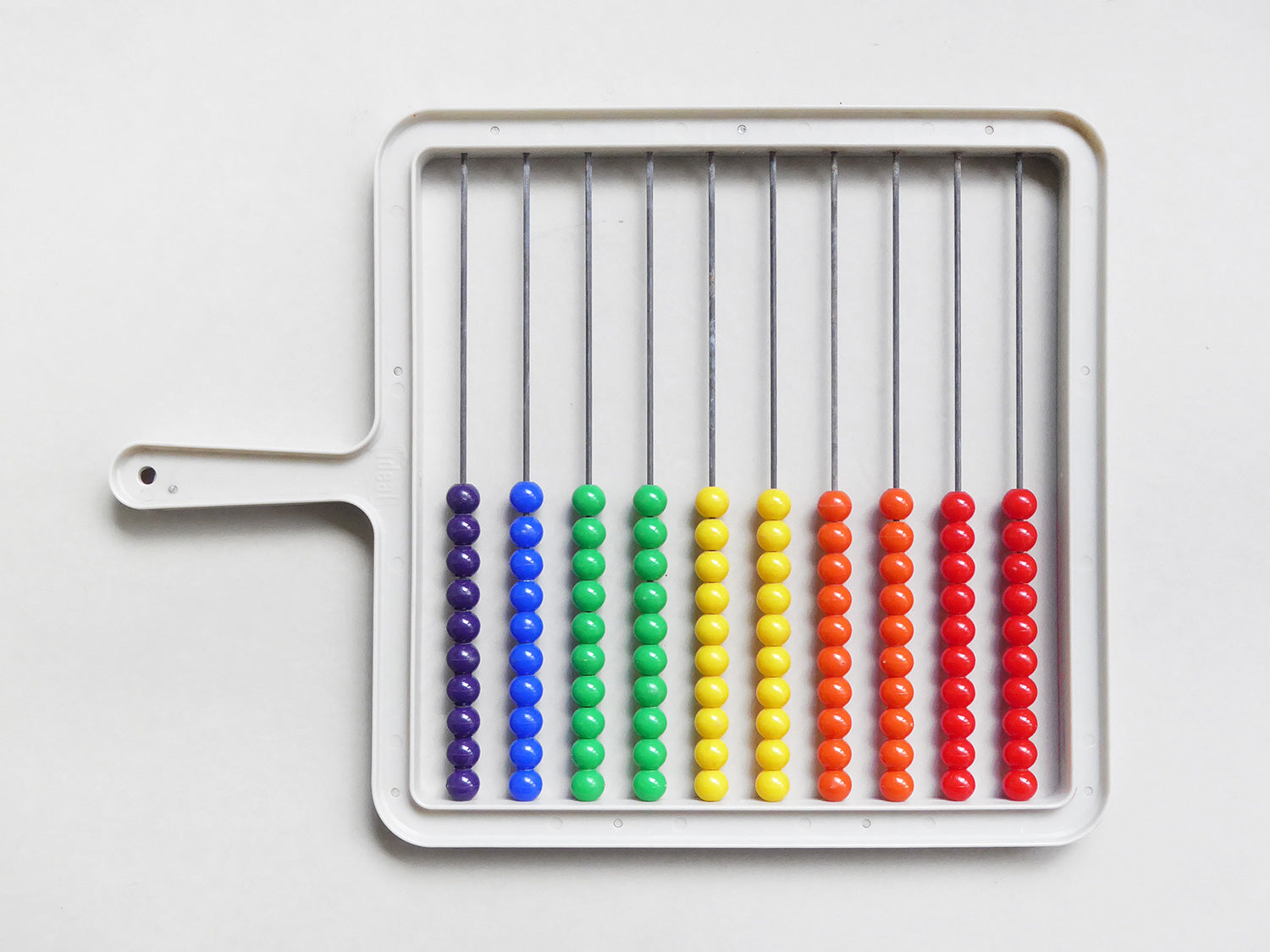 A handheld abacus (1970s) which is also great for tennis and other racket sports. The plastic and metal utensil is in perfect condition and guarantees basic maths solutions and display potential. 255mm square, plus handle.