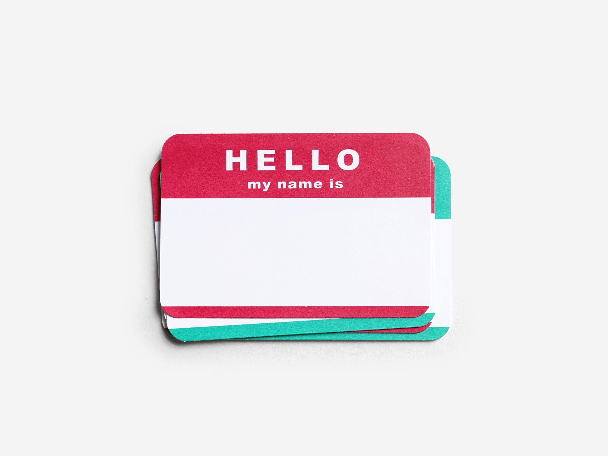 'Hello My Name is' stickers, for easy introduction in the workplace, on dates or simply as a humorous accessory. Each label is approximately 80x60mm. Packs of 5.