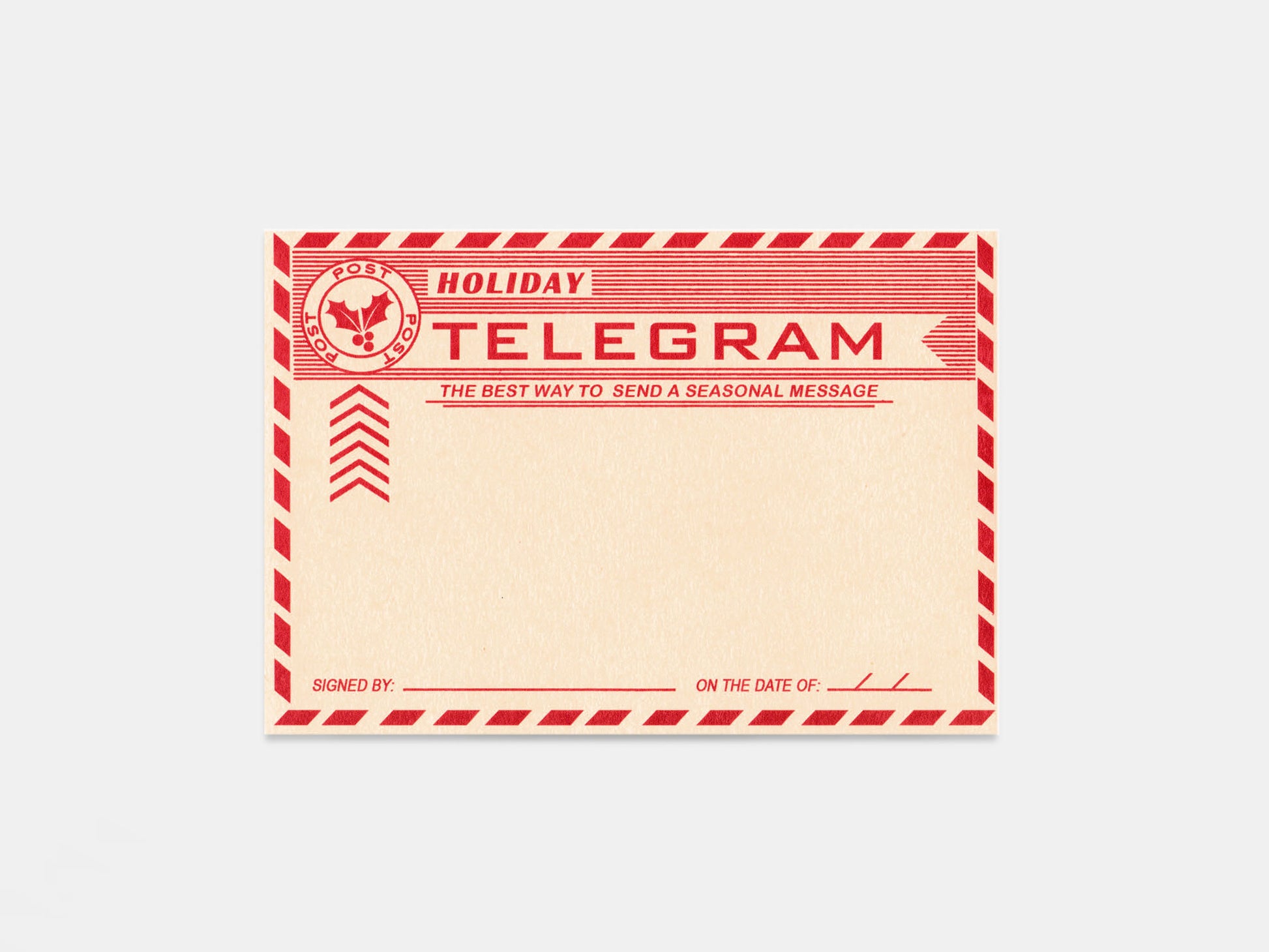 It's the best way to send a seasonal message! Inspired by old telegram cards, this notelet (not a folding card) is a must for snail mail lovers. It measures 125x85mm and comes with a white envelope.