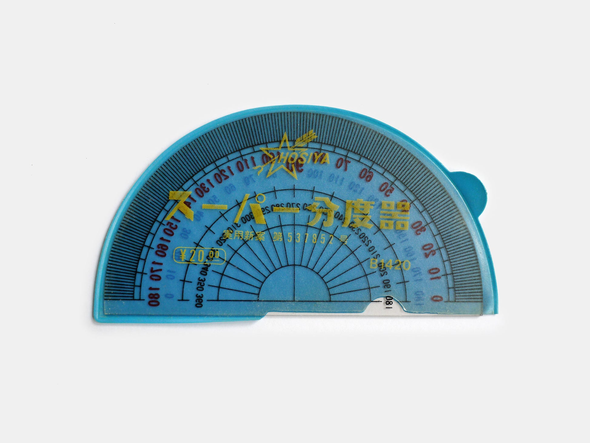 Deadstock Japanese protractors from the 1970s, the blue sleeve is excellent and the protractor is a simple clear plastic. The base of the protractor is 118mm