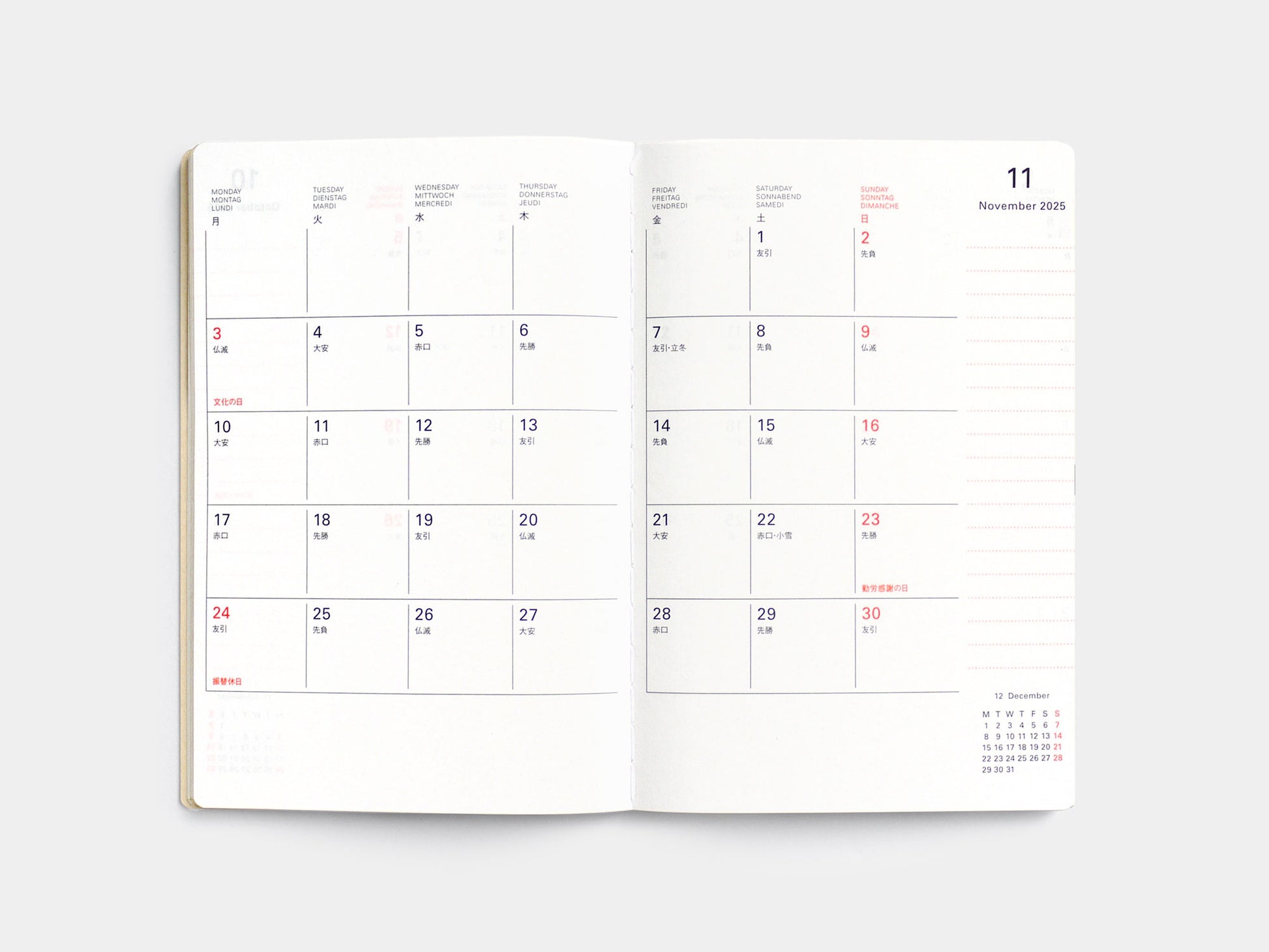 Inside you will find clear month planner, running Oct 2025 to Dec 2026.