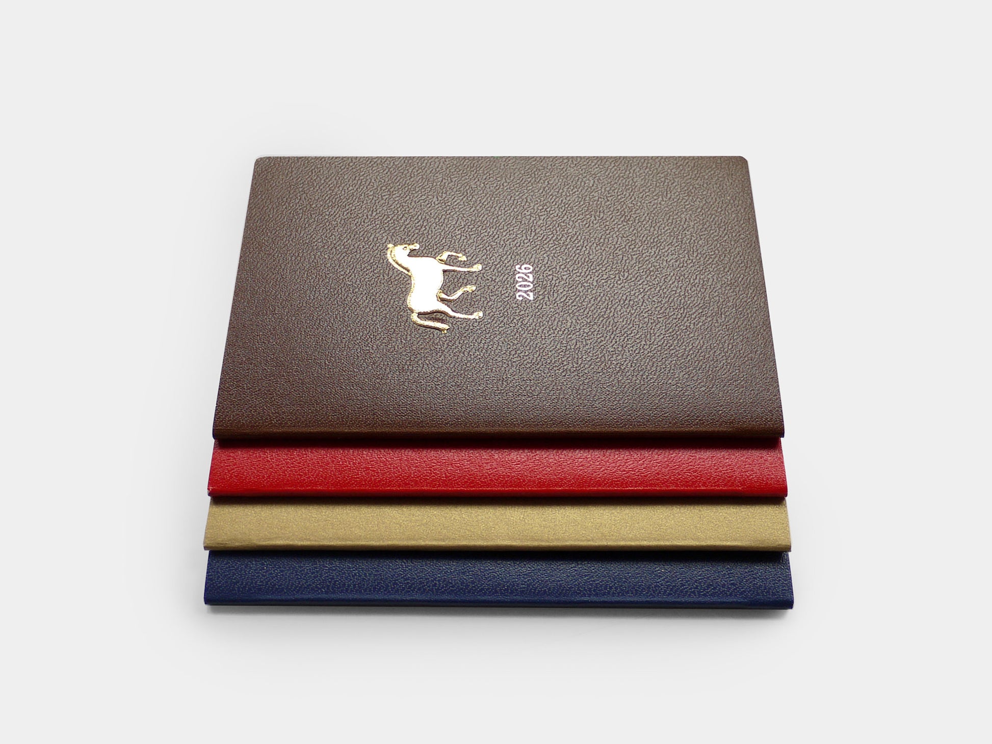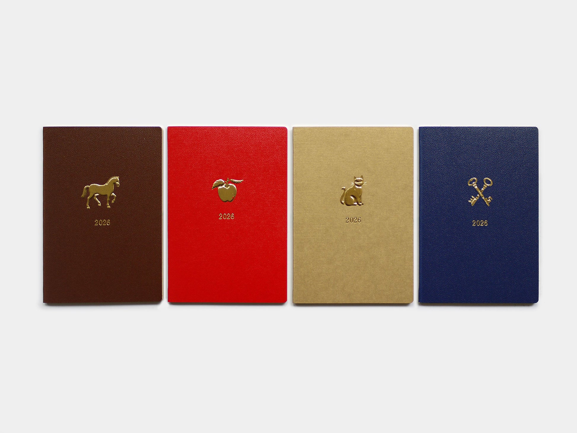 Elegant pocket diaries inspired by the passport format, but embellished with embossed icons not dissimilar to Monopoly figures. For 2026 we have an apple, a cat, a horse & some keys. The book has gilted edges and is a perfect, light tome for wallets and bags.