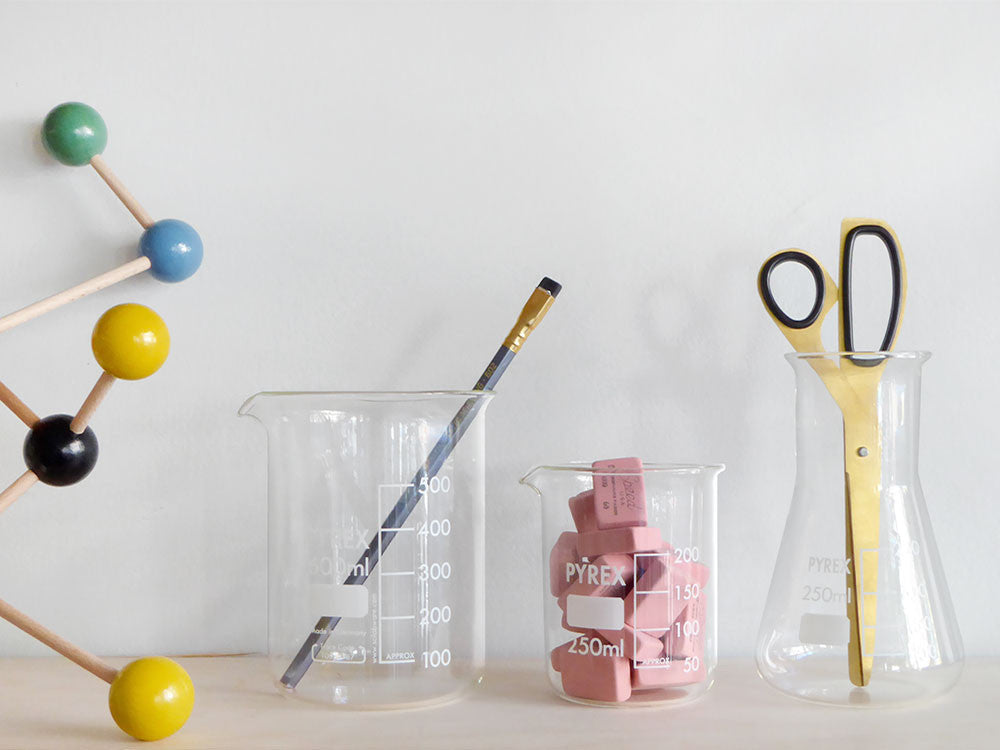 Laboratory glassware is perfect for desktop organising, whisking you right back to chemistry class. Without the homework! Attractive, hardy and practical. They look great filled with pencils and other office essentials. Choose your favourite shape & size.