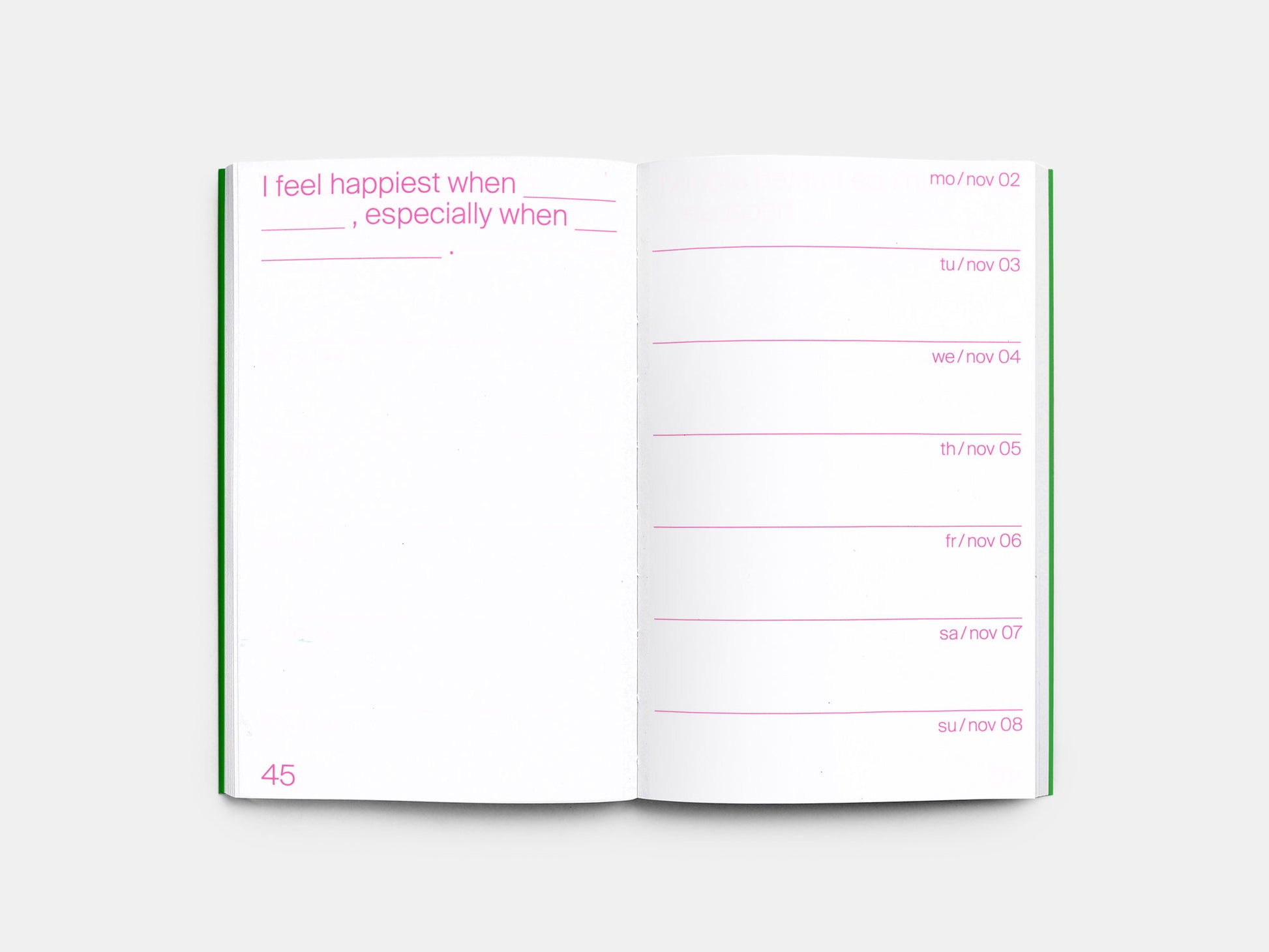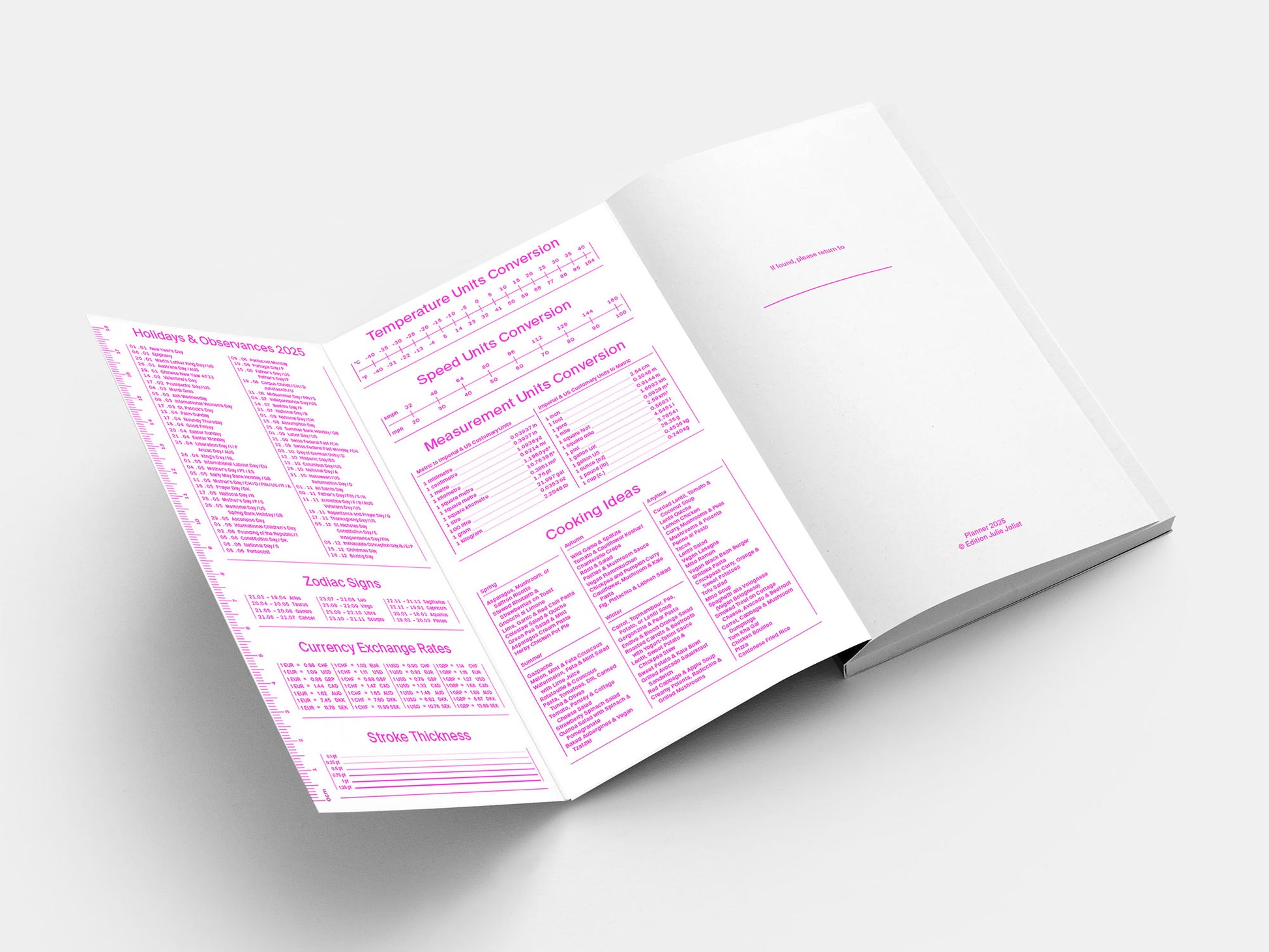 Format wise you will find week to view, alongside monthly and yearly planner pages. Notes section and map. The book is also flat-lay.