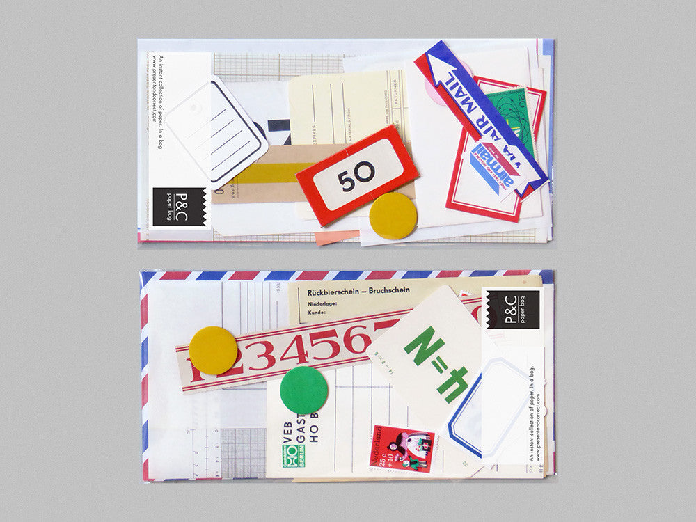 Every single one is different, but we make sure all are full of goodness. Graph paper, tags, forms, labels, flash cards, paper bags, coupons, envelopes & tickets feature heavily.