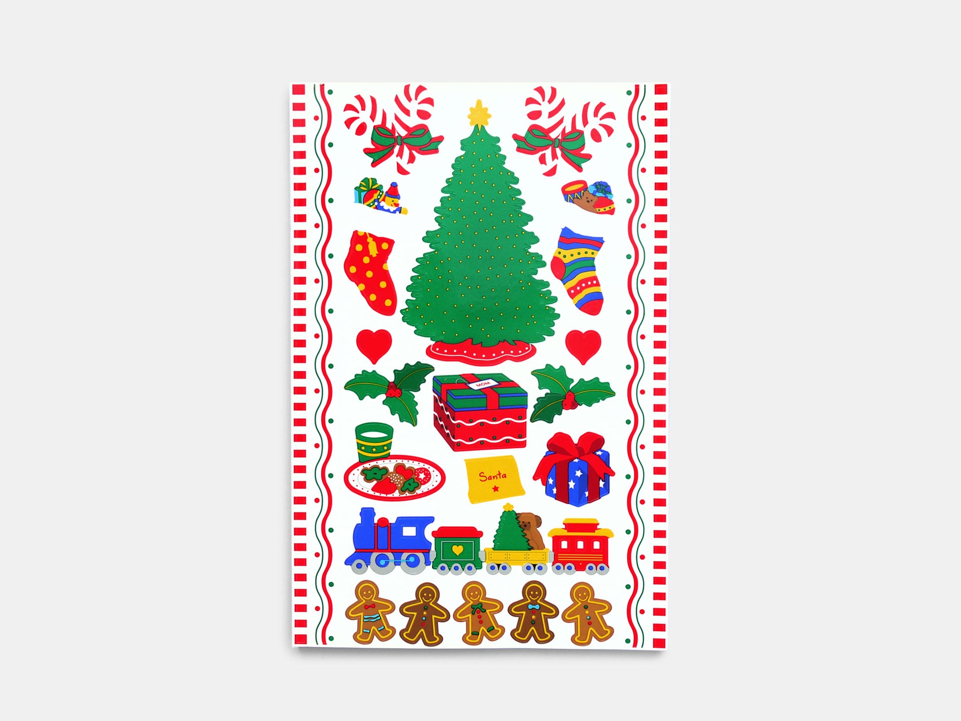 An extra large sheet of around 22 Christmas stickers, a deadstock sheet from 2001. 230x153mm. Perfect for adorning gifts, photo frames and homework.