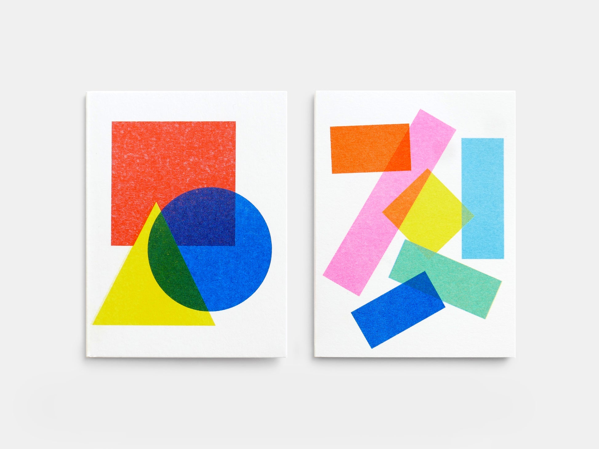 New mini cards from the excellent Scout Editions. Two designs celebrating the Bauhaus (left) and Collage (right). They are blank inside and measure 105x80mm, with a grey envelope.