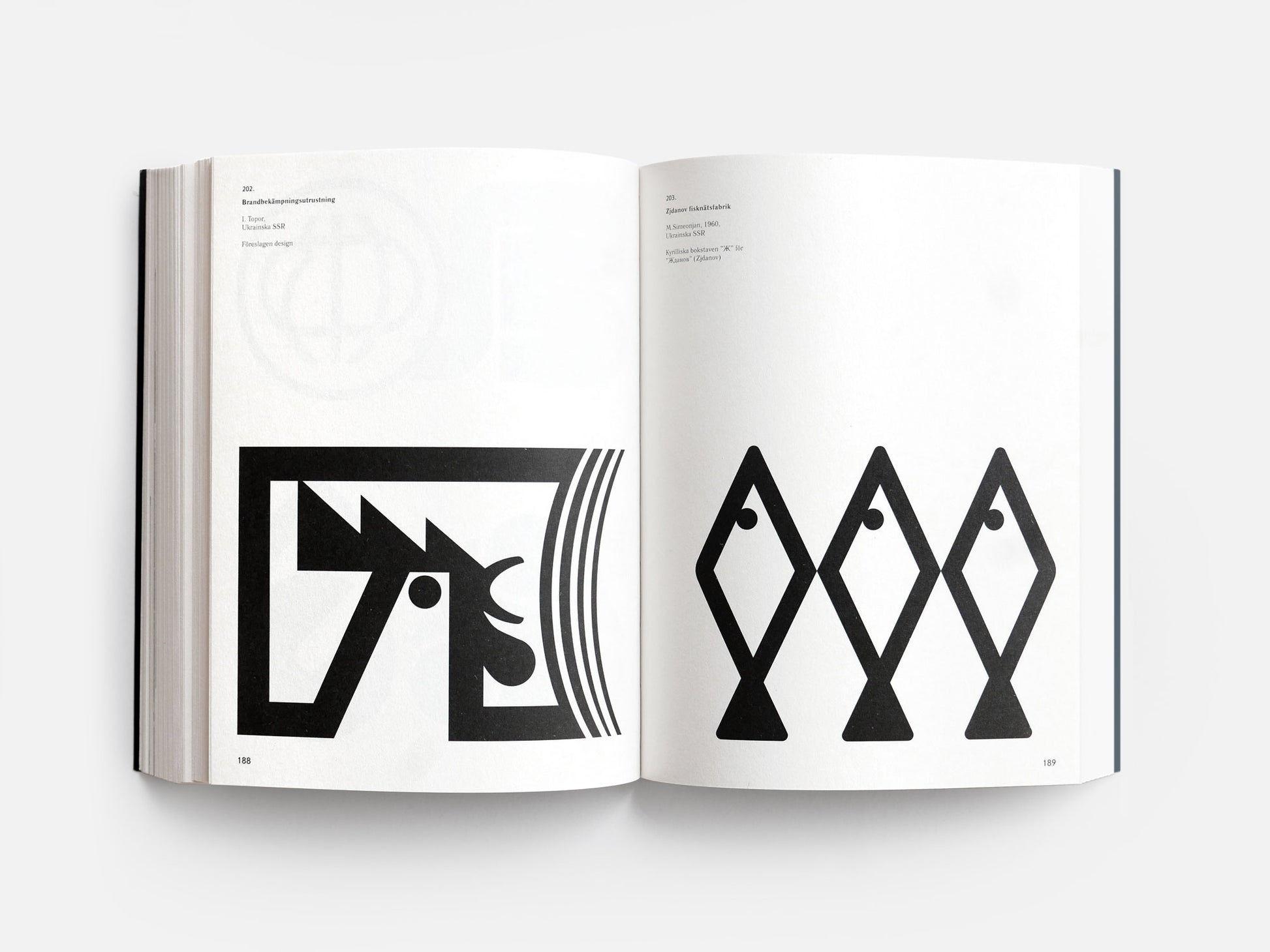 A very thorough collection of 360 Soviet era logos, bound in a thick chunk of paper. The paperback book has 311 pages, and whilst it is written in Swedish that does not deter from the graphic inspiration you will find. 190x150mm.