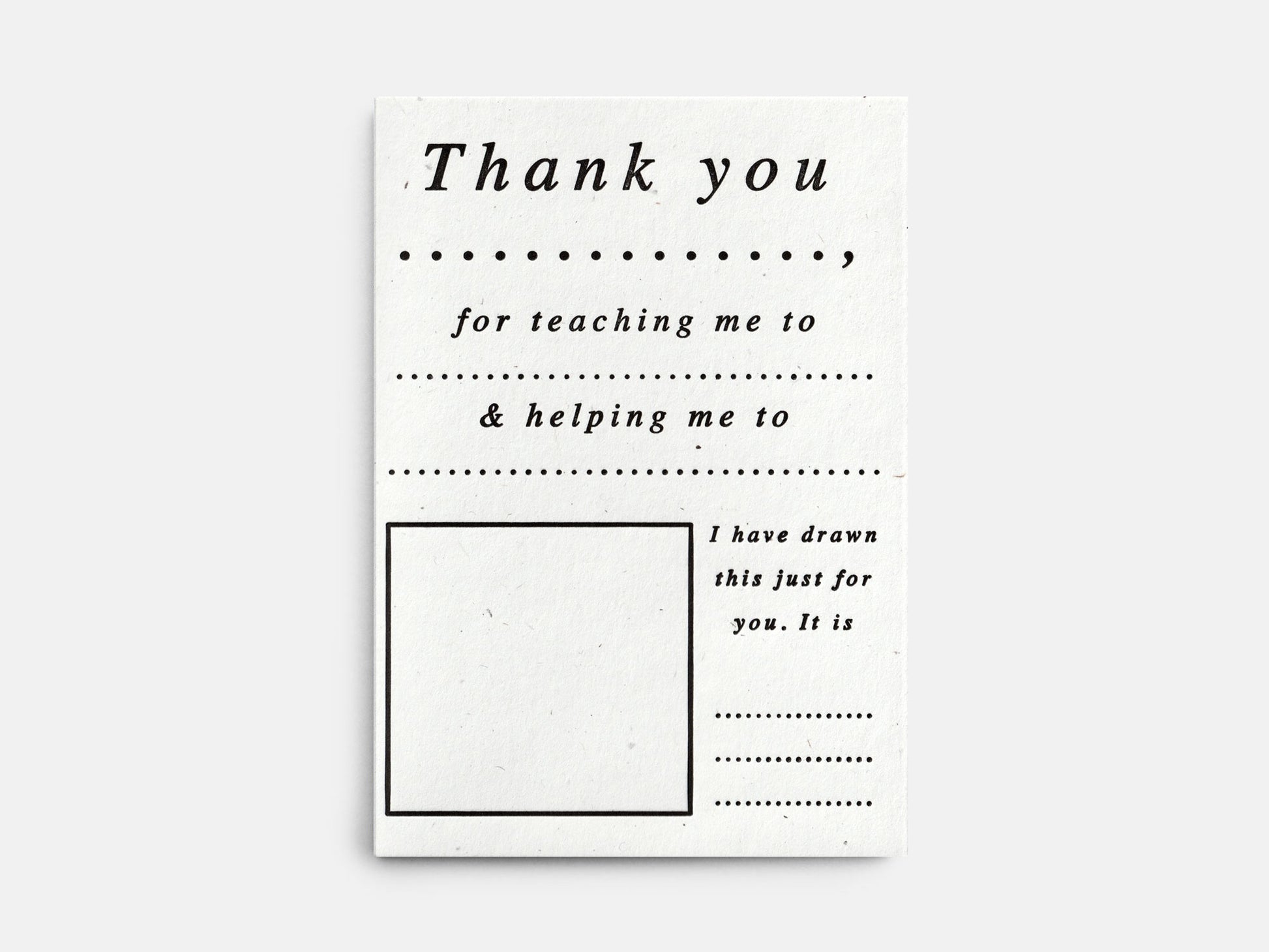 An interactive letterpress card which requires some input, meaning that no two are the same!
