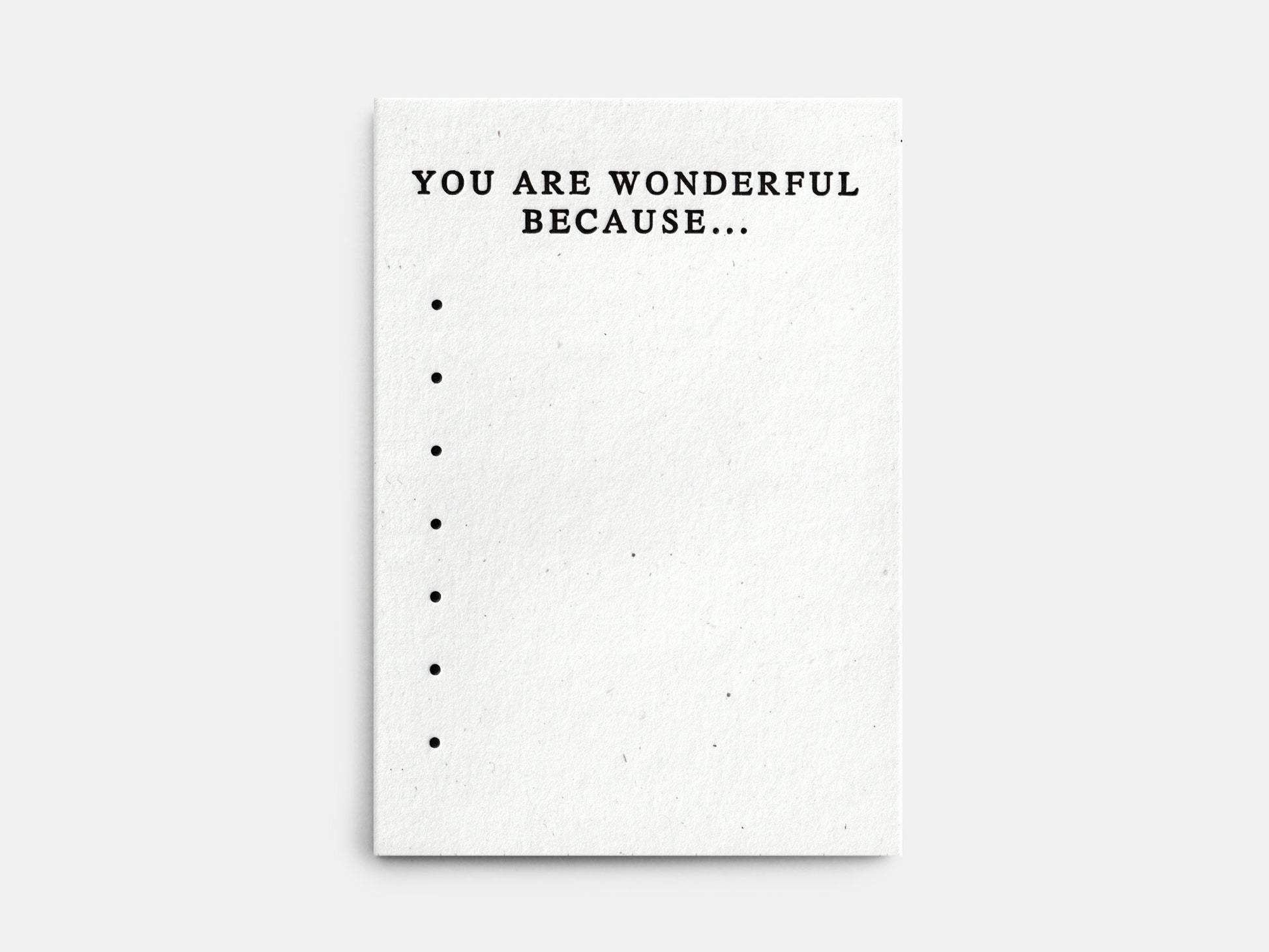 For a loved one, a list of all their wonderful attributes which is written by you. Of course if there are more than 7 things you can complete it on the other sides of this card.